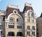 引進外部智力,招賢納才,高薪聘請國內資深歐 式建筑設計專家擔任企業技術顧問,并聘用國內 優秀設計師組建設計團體。在建筑設計中,設計 師把握仿真石能任意造型的特點,將建筑的功能 化、藝術化、人格化和個性化得以充分展現,體 現了現代建筑高貴、典雅的風格,讓觀者領略了 不同凡響的品味和悠遠的歐洲文化。